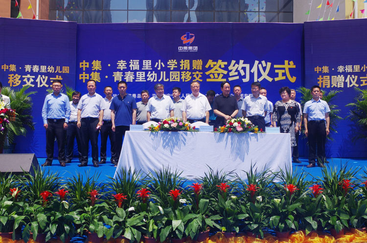 2017年6月22日下午14時,甘肅中集實業(yè)集團有限公司通過甘肅省慈善總會,向蘭州市安寧區(qū)人民政府捐贈價值1.02億元中集•幸福里小學暨中集•青春里配建幼兒園移交儀式在中集•幸福里小學操場隆重舉行。甘肅省原人大常委會副主任、甘肅省慈善總會會長朱志良,甘肅省原民政廳黨組書記、廳長、甘肅省慈善總會常務副會長梁國安,甘肅省教育廳副廳長趙 凱,蘭州市人大常委會副主任孫曉鋼,蘭州市人民政府副秘書長淡漢榮,安寧區(qū)區(qū)委書記王 方及安寧區(qū)區(qū)委副書記、區(qū)長雒澤民攜安寧區(qū)委、區(qū)人大、區(qū)政府、區(qū)政協(xié)四大班子領導,蘭州市教育局、蘭州市國土局、蘭州市規(guī)劃局、蘭州市房產(chǎn)局相關領導出席捐贈儀式,甘肅中集實業(yè)集團有限公司黨委書記、董事長周啟濤代表公司完成與安寧區(qū)人民政府捐贈及移交簽約。