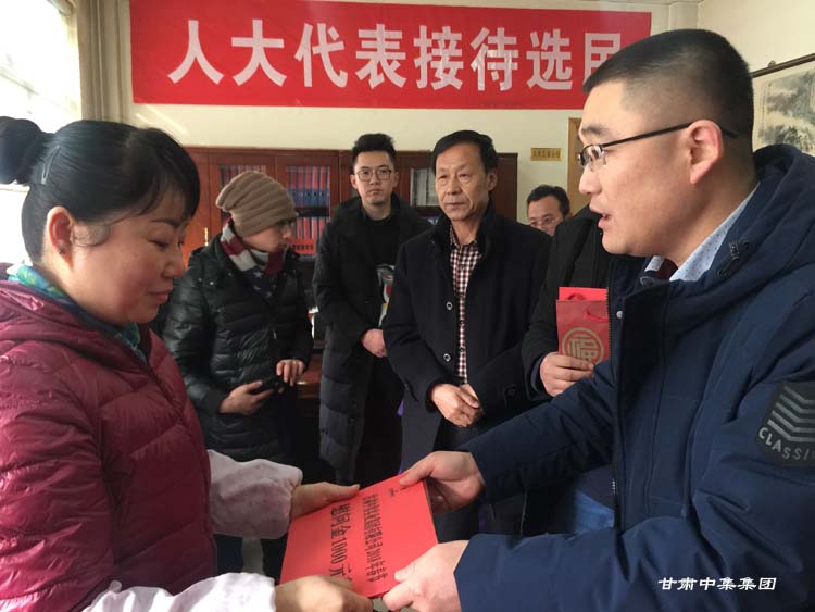 2018年2月7日上午,在2018年新春佳節(jié)即將來臨之際,甘肅省慈善總會(huì)榮譽(yù)會(huì)長(zhǎng)、安寧區(qū)人大代表、甘肅中集集團(tuán)董事長(zhǎng)周啟濤親自安排部署,并委托集團(tuán)公司黨委委員魏建峰、安 康兩位同志親自前往安寧區(qū)十里店街道辦事處,在街道黨工委副書記、人大工委主任梅鵬飛等領(lǐng)導(dǎo)陪同下,開展愛心送溫暖行動(dòng),為街道10戶特困家庭送上新年的祝福和慰問金。