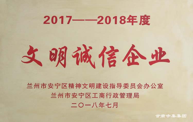 2018年7月20日,安寧區(qū)舉行2017-2018年度全區(qū)“文明誠(chéng)信企業(yè)、文明誠(chéng)信個(gè)體工商戶”表彰大會(huì)。會(huì)上,甘肅中集房地產(chǎn)開發(fā)有限公司榮獲安寧區(qū)“文明誠(chéng)信企業(yè)”榮譽(yù)稱號(hào)。