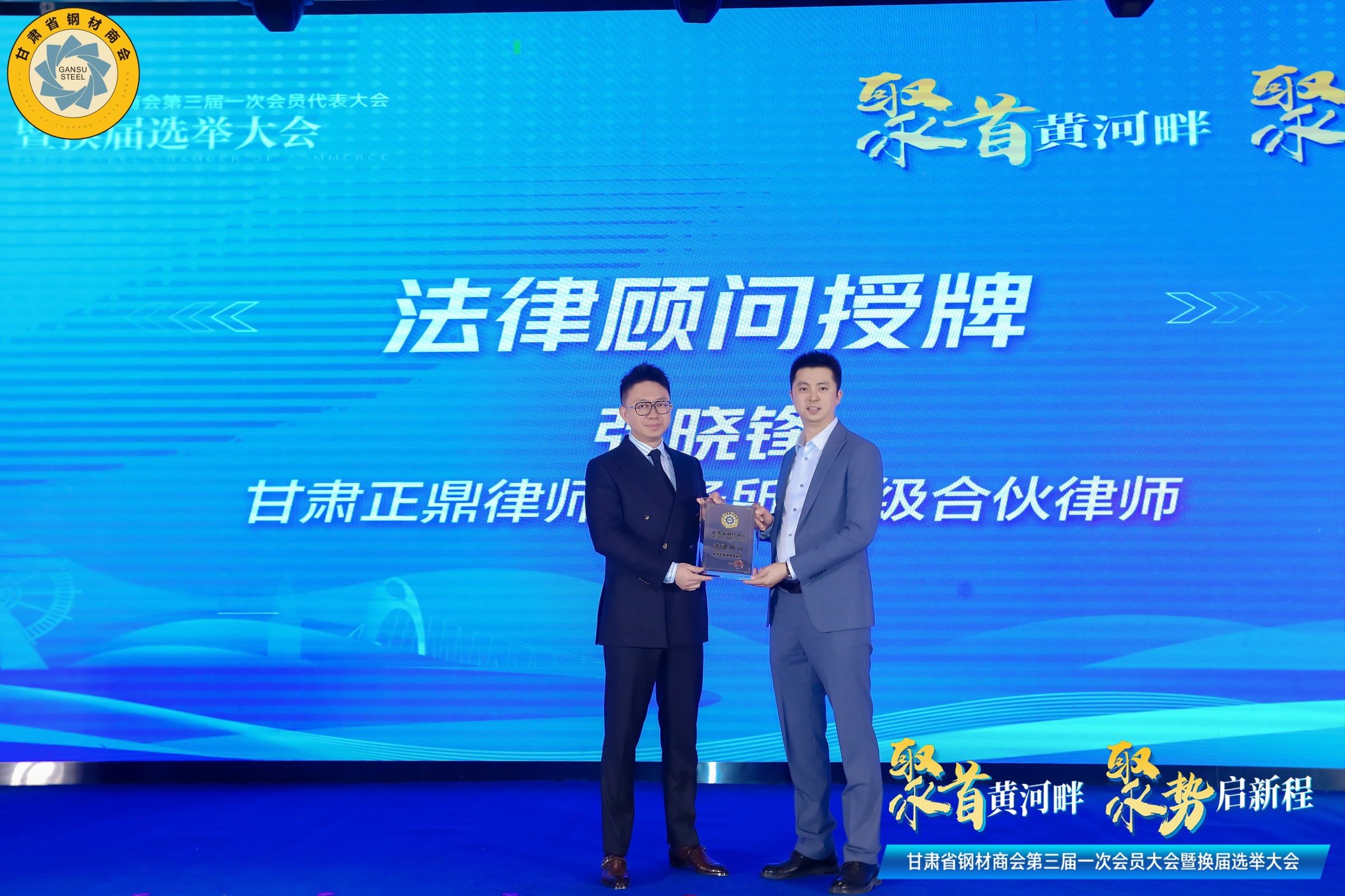 甘肅省鋼材商會(huì)會(huì)長(zhǎng)周啟濤為法律顧問單位--甘肅正鼎律師事務(wù)所授牌